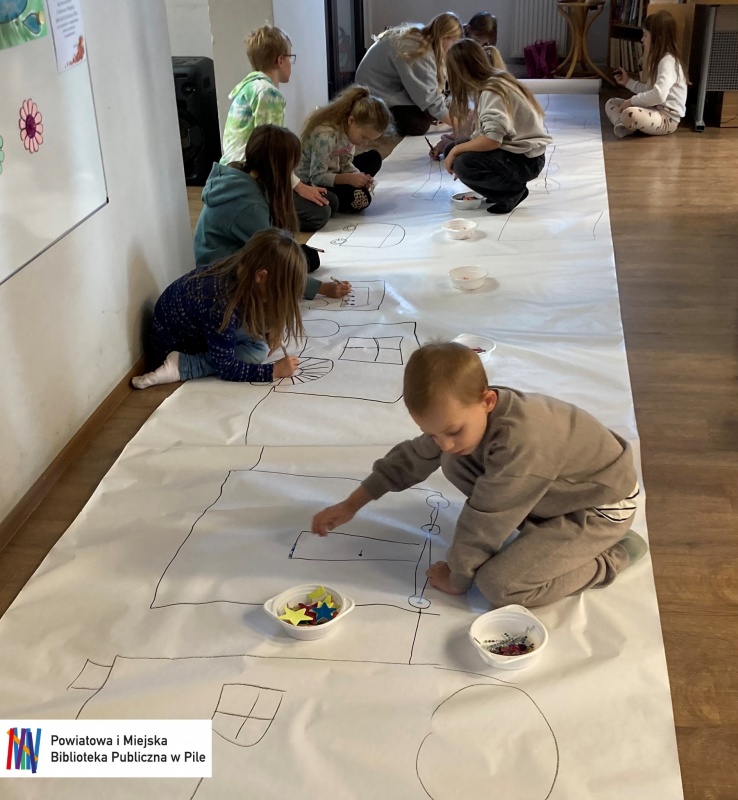 W ramach zajęć dzieci zwiedziły Bibliotekę – miejsca wspólnych podróży po świecie, stworzyły mapy biblioteki, opracowały wspólnie regulamin klubu oraz zapoznały się z zasadami Klubu Włóczykijia,
