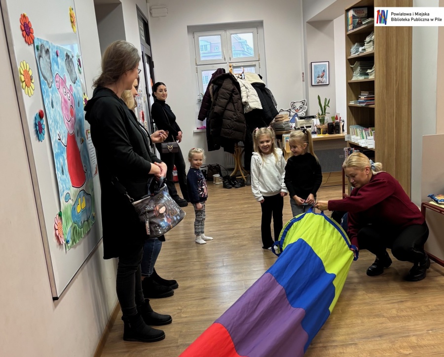 Nie zabrakło też wspólnej zabawy! Kolorowa chusta animacyjna wprawiła wszystkich w świetny nastrój , a skoczne wyścigi w workach wywołały mnóstwo emocji i śmiechu!