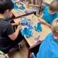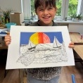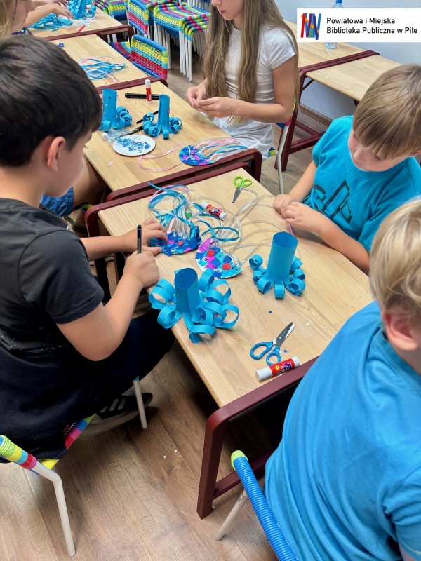 Podczas ostatnich warsztatów mali artyści stworzyli piękne morskie kolaże oraz letnie pocztówki z arbuzem – pełne słońca, radości i wakacyjnych wspomnień.