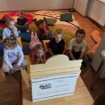 Podczas spotkania z cyklu „Bajeczki ze skrzyneczki” dzieci wysłuchały skrytego w magicznej walizce opowiadania o małym zajączku, który nauczył się, jak ważna jest przyjaźń i odwaga.