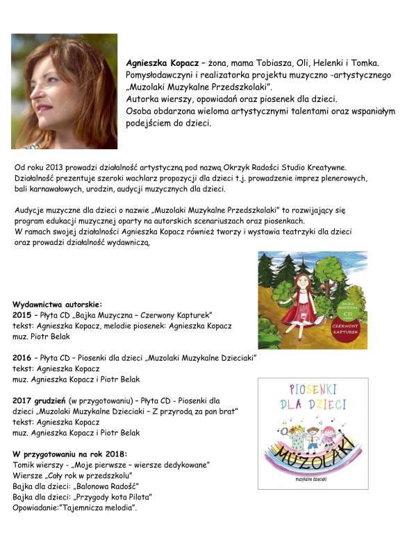 Prezentacja wierszy i piosenek dla dzieci Agnieszki Kopacz, czytelniczki biblioteki.