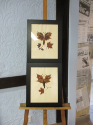 Prezentacja obrazów w formie kolażu z liści Teresy Loos.