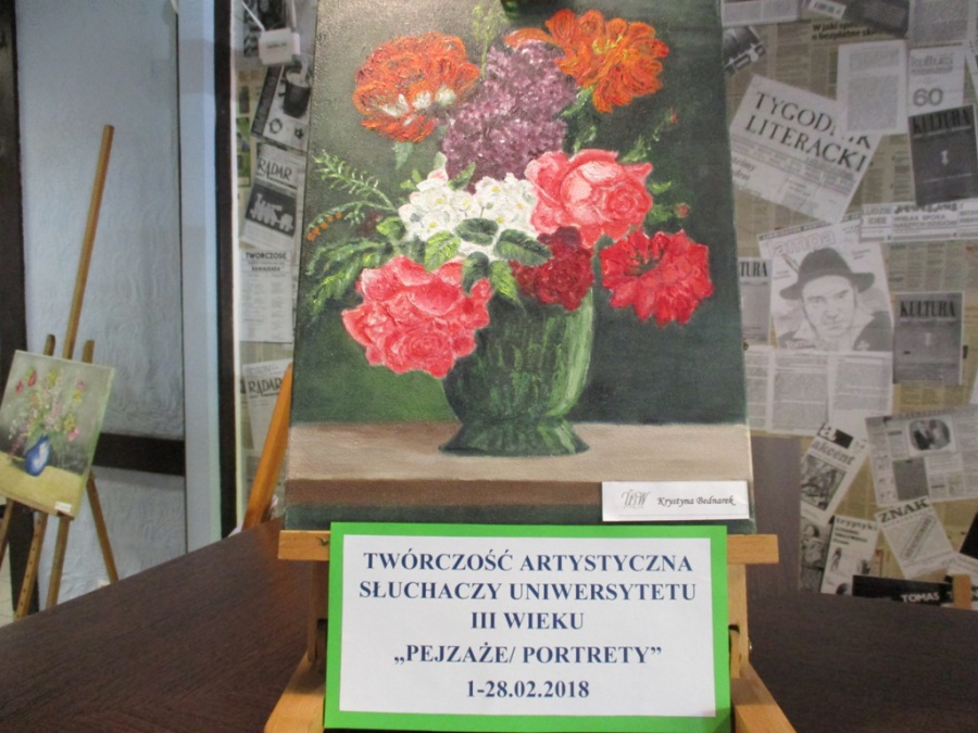 Wystawa twórczości artystycznej słuchaczy Uniwersytetu III Wieku.