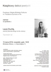 Spotkanie z Laurą Chuchlą, autorką debiutanckiego tomiku wierszy “Spowiadam się”.