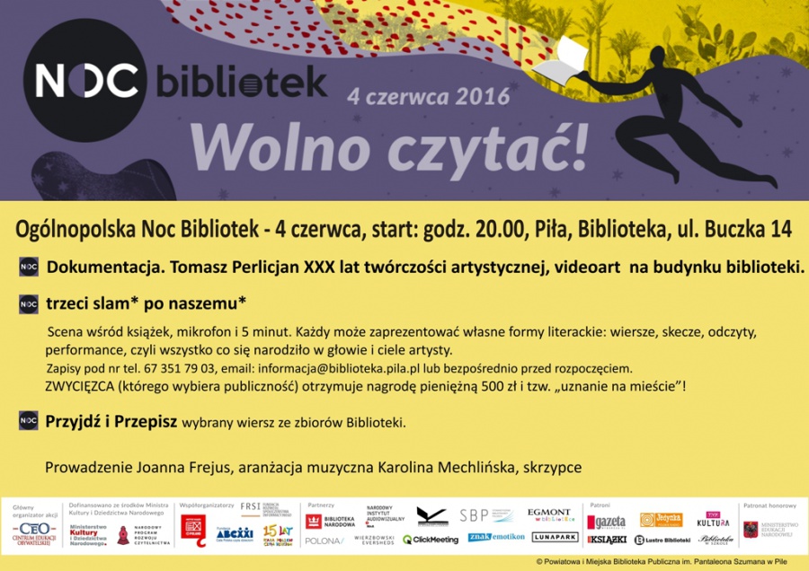Zapraszamy w sobotę 4 czerwca 2016 r., od godz. 20.00 na Ogólnopolską Noc Bibliotek