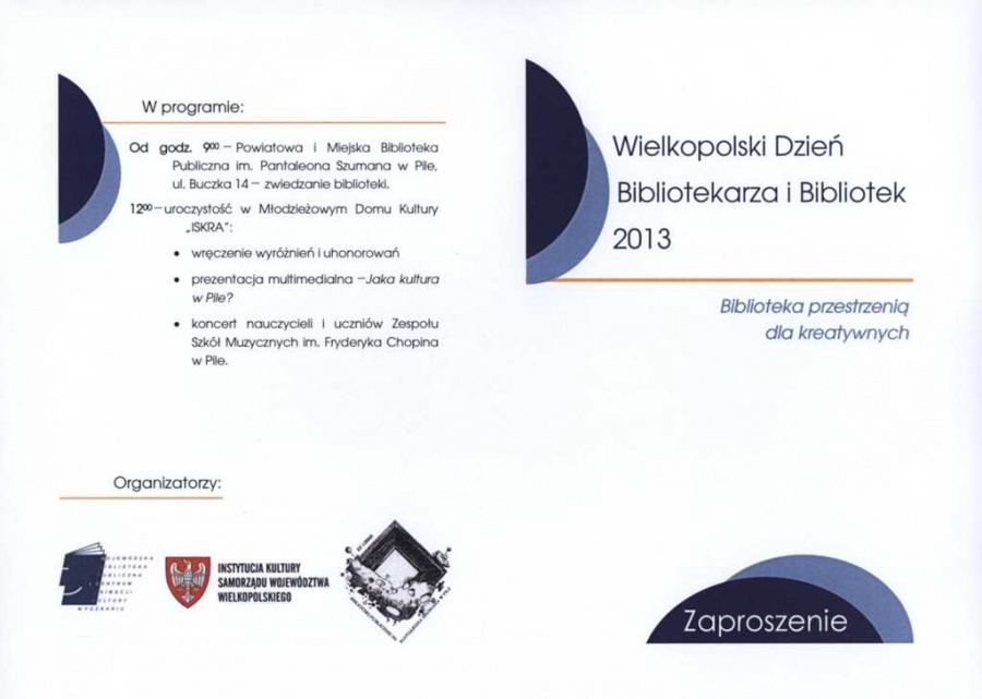 Zapraszamy na uroczystość z okazji Wielkopolskiego Dnia Bibliotekarza i Bibliotek 2013.