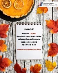Uprzejmie informujemy, że kody Legimi na m-c LISTOPAD będą wysyłane 31 października 2025r.