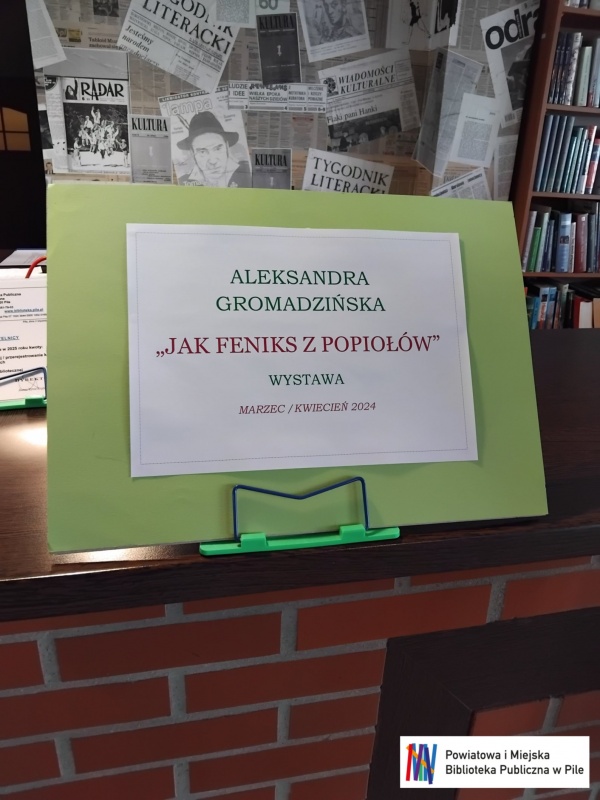 „Jak Feniks z popiołów” - malarstwo Aleksandry Gromadzińskiej, słuchaczki UTW w Pile. Ekspozycję można oglądać do końca kwietnia br. w godzinach pracy filii. Filia nr 4 PiMBP, al. Powstańców Wlkp. 62