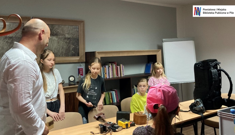 Biblioteka zamieniła się w prawdziwe studio fotograficzne. Wszystko za sprawą warsztatów fotograficznych dla dzieci, które odbyły się w ramach Klubu Włóczykija.