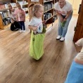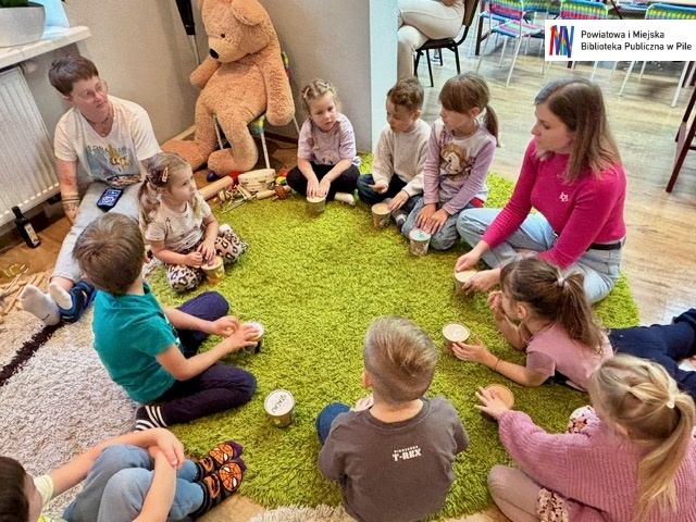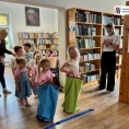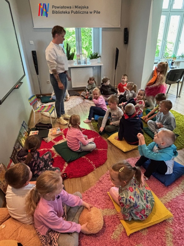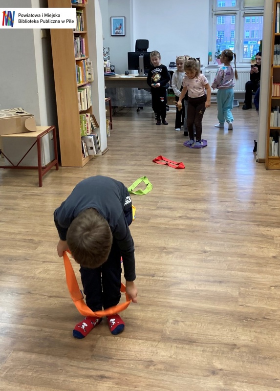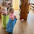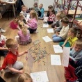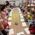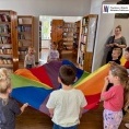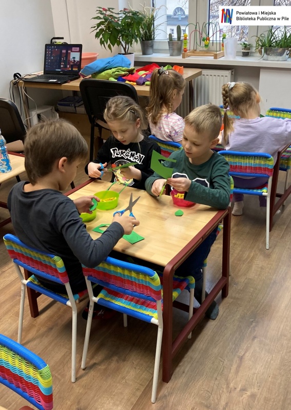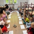 Podczas warsztatów dzieci przeniosły się w świat bajkowych historii. Wysłuchały opowieści ukrytej w teatrzyku Kamishibai „Noc w Bibliotece”, opowiadającej o Krasnoludku, który zgubił swoją bajkę.