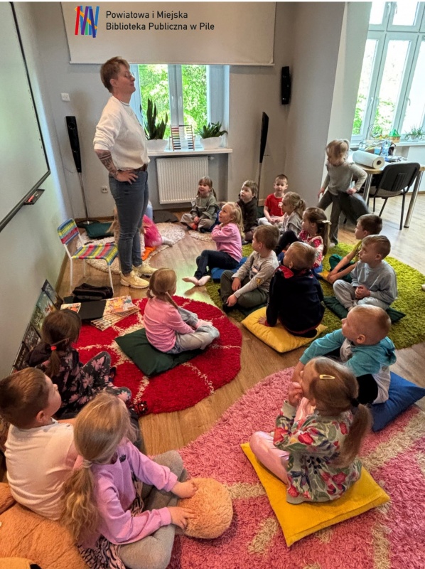 Nie zabrakło również emocji przy grze w memory na tablicy interaktywnej, gdzie maluchy świetnie ćwiczyły pamięć i spostrzegawczość. A na zakończenie wszyscy chętnie uczestniczyli w zabawach ruchowych, które jak zawsze przyniosły mnóstwo śmiechu i dobrej energii.