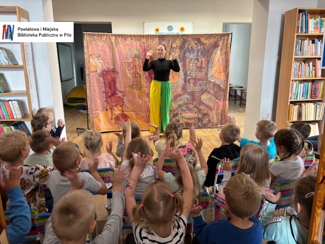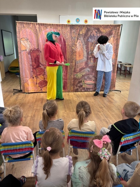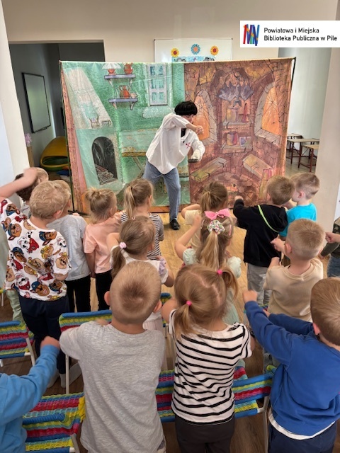 Dziś nasza biblioteka zamieniła się w prawdziwą krainę przygód! Wszystko za sprawą barwnego i pełnego humoru spektaklu „Przygody Baltazara Gąbki”, który dla naszych najmłodszych widzów zaprezentował Teatr Blaszany Bębenek.