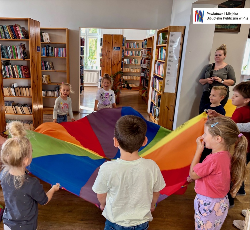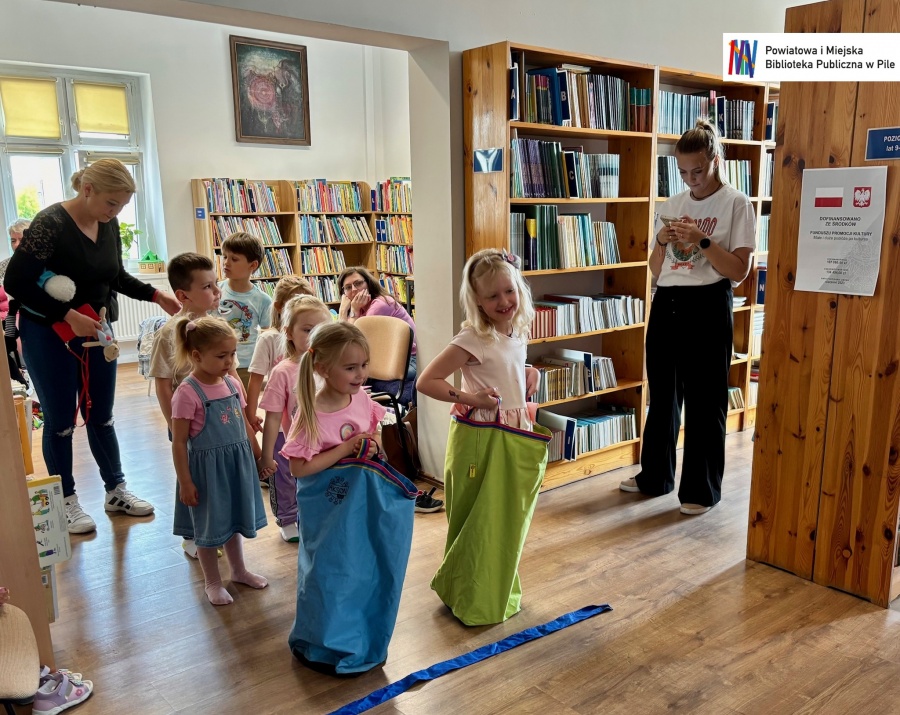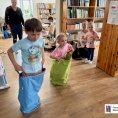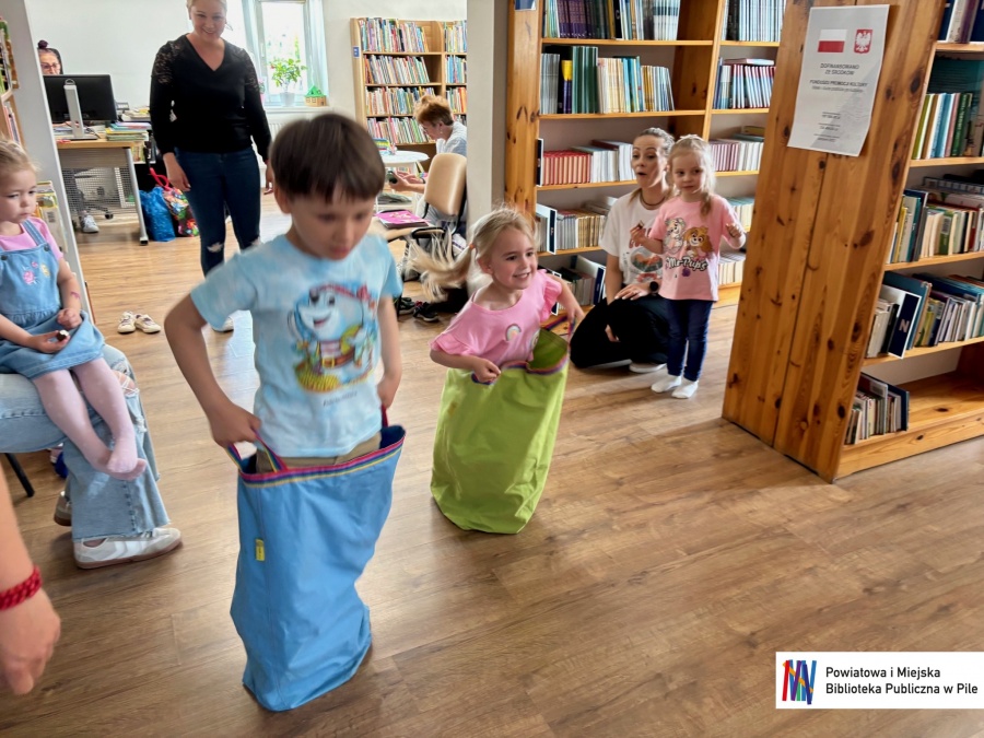 Nie zabrakło też wspólnej zabawy! Kolorowa chusta animacyjna wprawiła wszystkich w świetny nastrój , a skoczne wyścigi w workach wywołały mnóstwo emocji i śmiechu!