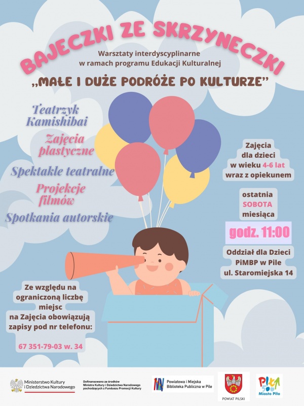 „Bajeczki ze skrzyneczki” - to projekt edukacji kulturalnej skierowany do dzieci w wieku 4-6 lat wraz z rodzicami, dla grupy dziesięcioosobowej + rodzic/opiekun/senior.