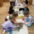 praca plastyczna, zabawa z chustą animacyjną.