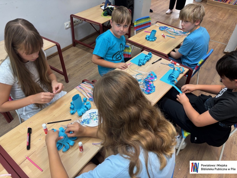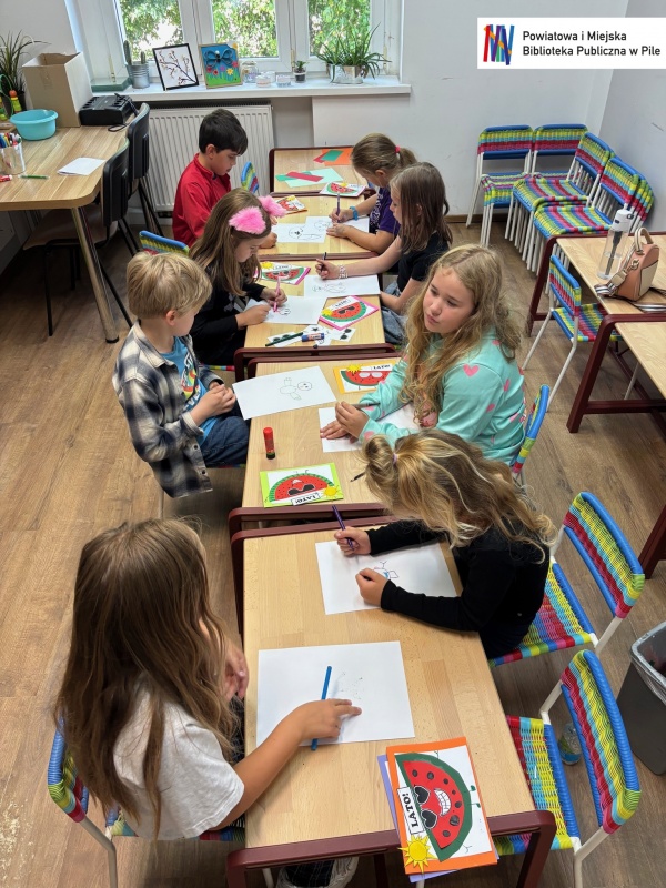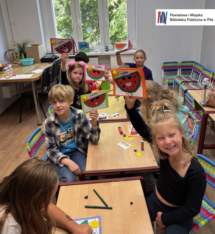 Podczas ostatnich warsztatów mali artyści stworzyli piękne morskie kolaże oraz letnie pocztówki z arbuzem – pełne słońca, radości i wakacyjnych wspomnień.