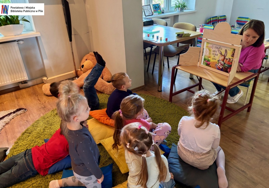 Podczas spotkania z cyklu „Bajeczki ze skrzyneczki” dzieci wysłuchały skrytego w magicznej walizce opowiadania o małym zajączku, który nauczył się, jak ważna jest przyjaźń i odwaga.