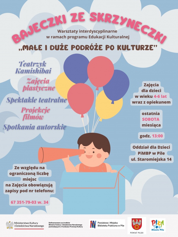 Zajęcia odbywają się w ramach programu Edukacja kulturalna 2023 i realizowanego przez Bibliotekę projektu "Małe i duże podróże po kulturze".
